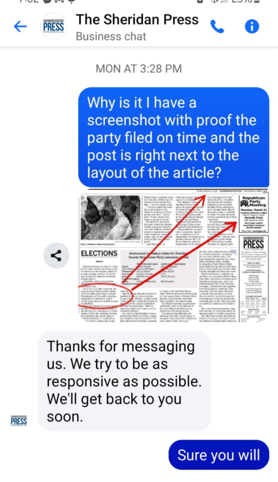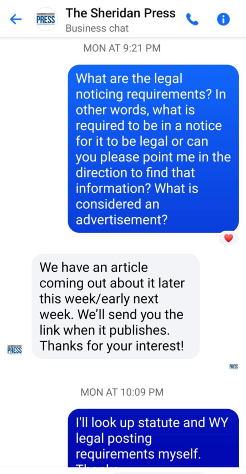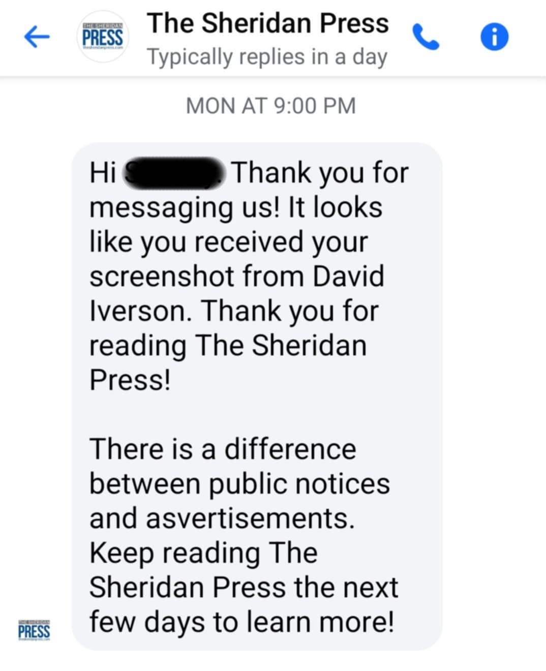 Text Messages with The Sheridan Press